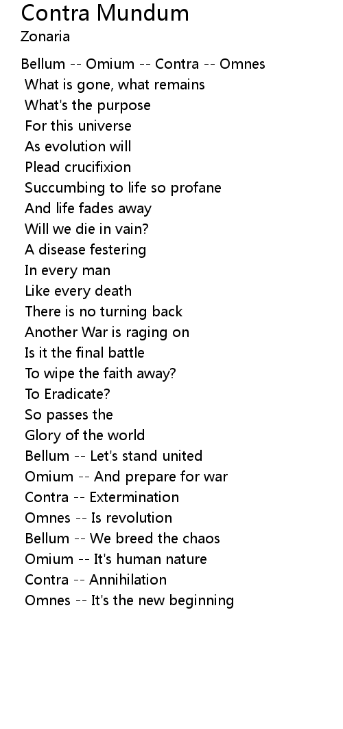 Bellum -- Omium -- Contra -- Omnes |