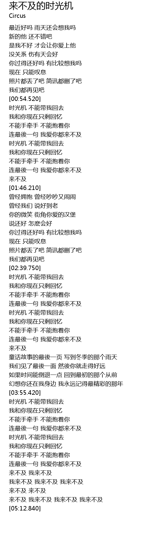| [05:02.160] | 来不及 我来不及 我来不及 我来不及 |