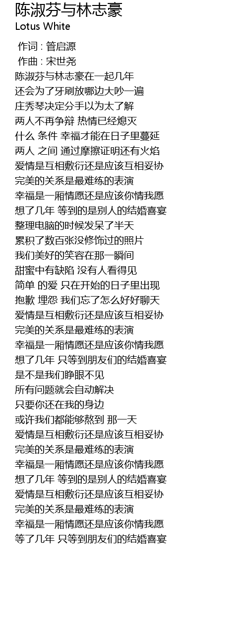 | [00:18.91] | 陈淑芬与林志豪在一起几年 |