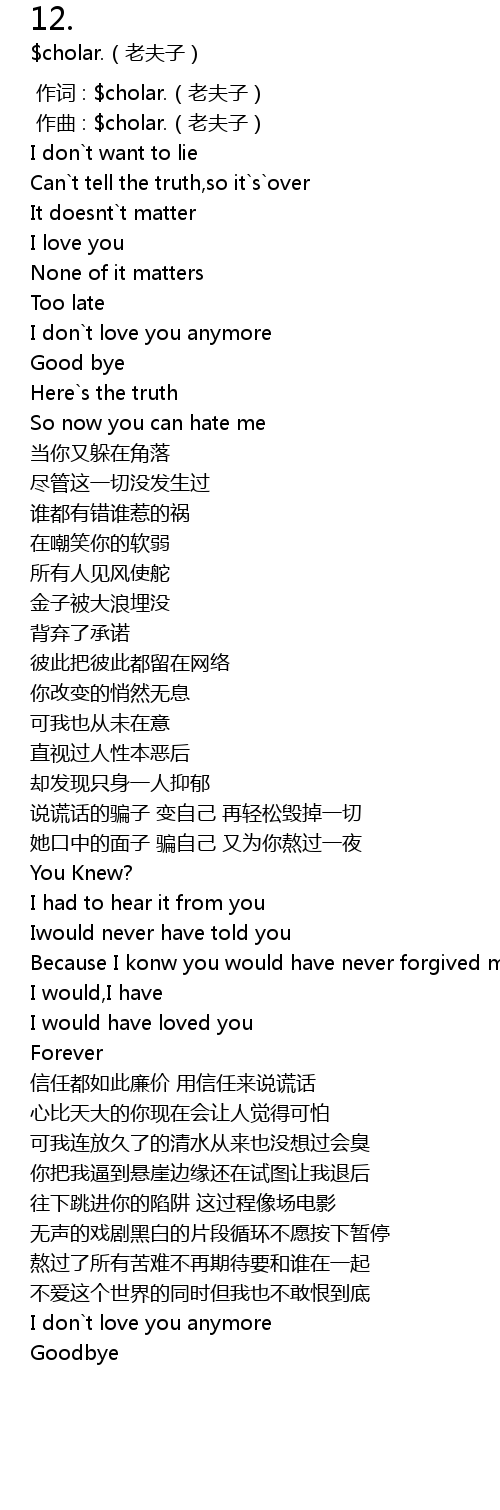 | [00:00.000] | 作词 : $cholar.(老夫子) |