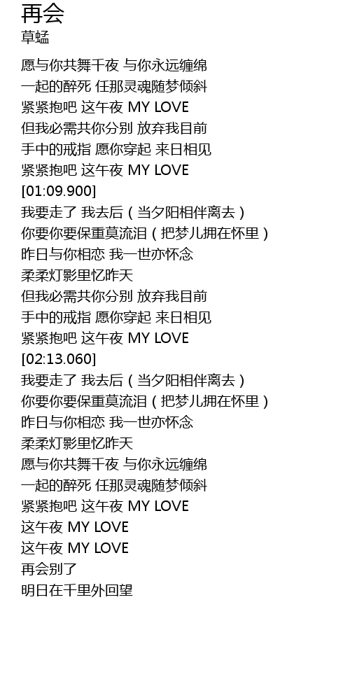 | [03:02.450] | 紧紧抱吧 这午夜 MY LOVE |