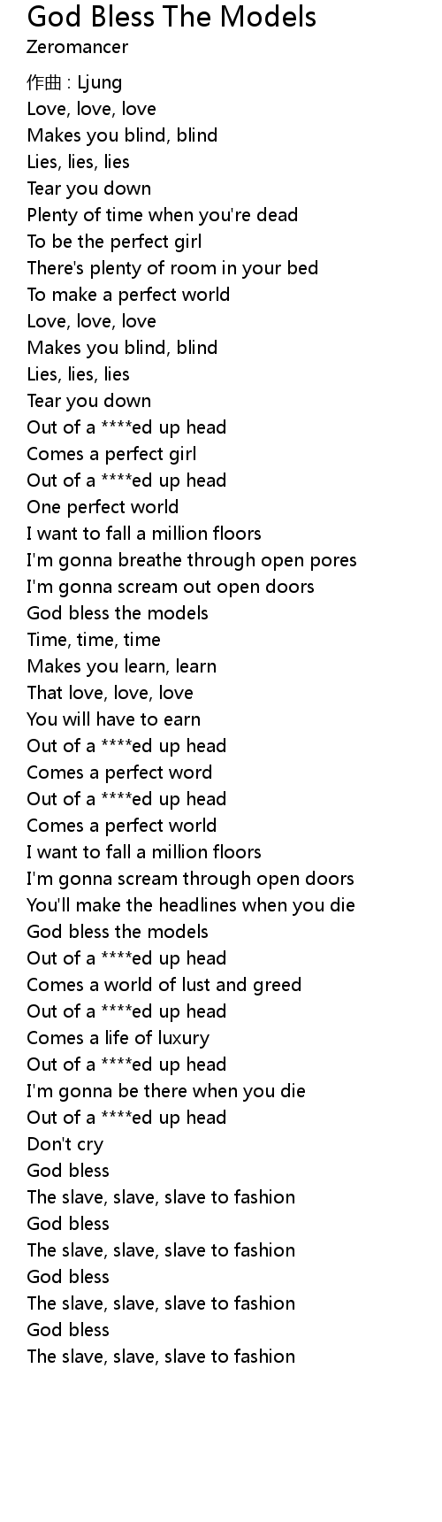 | Song | God Bless The Models |