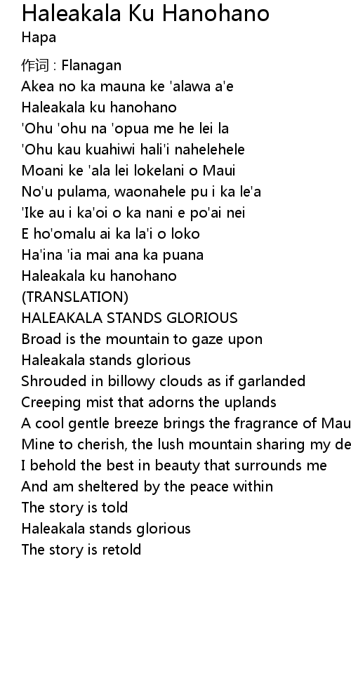 | ' Ike au i ka' oi o ka nani e po' ai nei | |