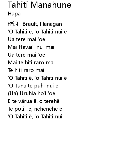 | 'O Tahiti ë, 'o Tahiti nui ë | |