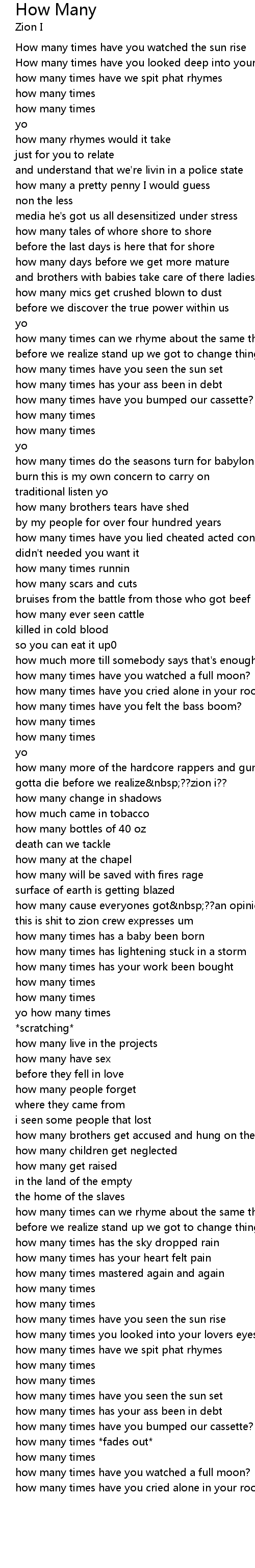 How Many Lyrics