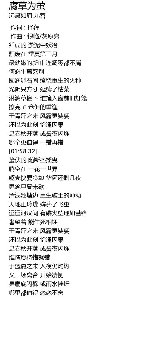 | [02:58.94] | 迢迢河汉间 有磷火坠地如彗锋 |