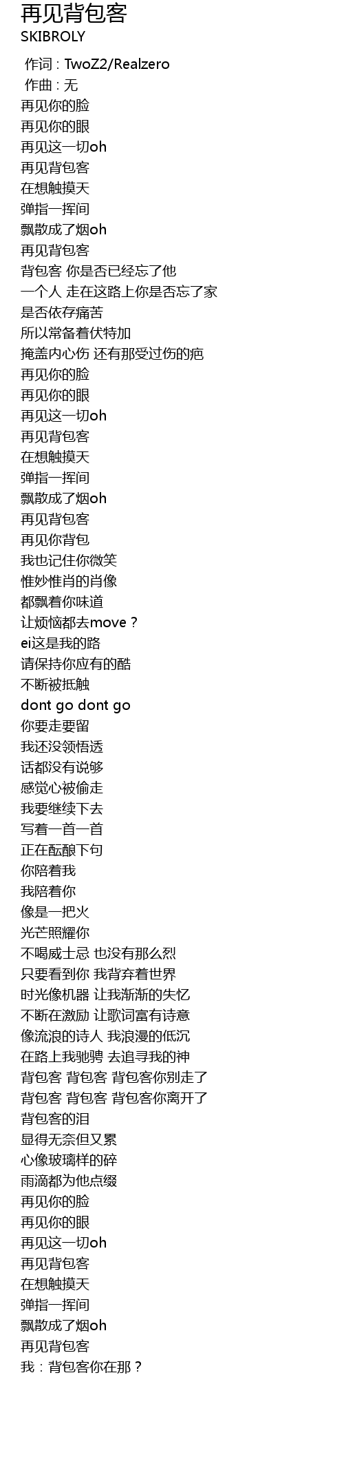 | [01:35.603] | 背包客 背包客 背包客你别走了 |