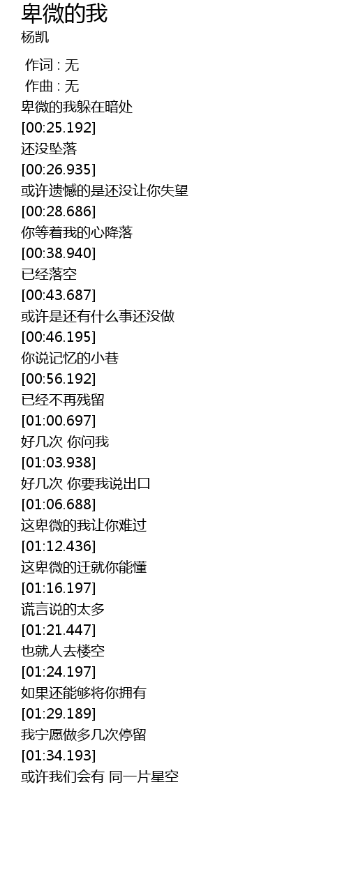 | [00:20.687] | bēi wēi de wǒ duǒ zài àn chù |