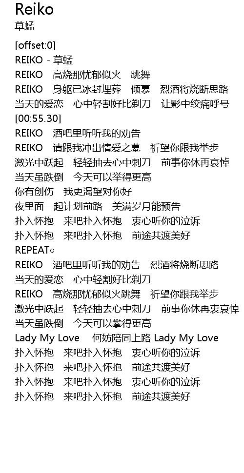 | [00:06.76] | REIKO - 草蜢 |