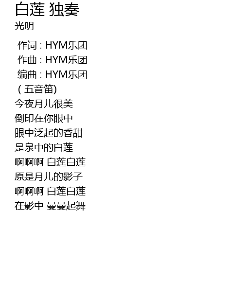 | [00:01.000] | zuo qu : HYM yue tuan |