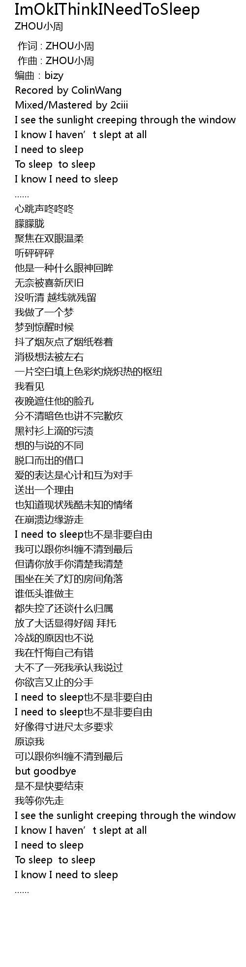 | [02:14.996] | I need to sleep也不是非要自由 |