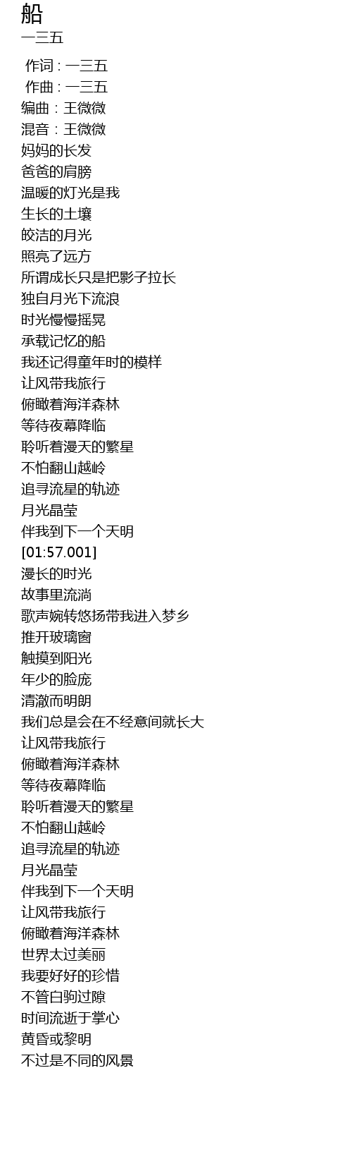 | [00:01.000] | zuò qǔ : yī sān wǔ |