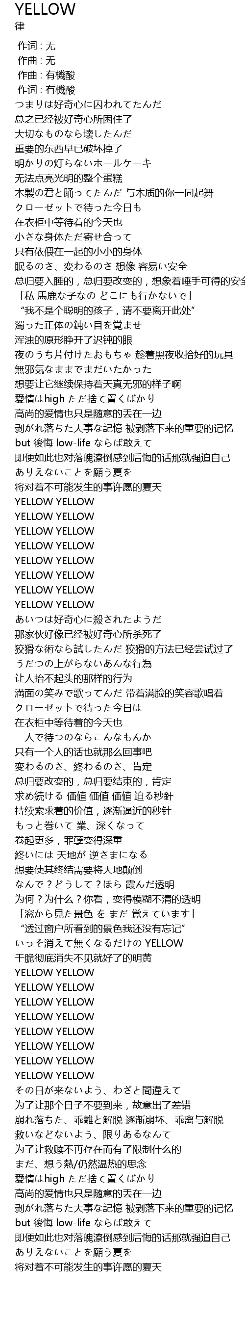| [01:40.012] | いっそ消えて無くなるだけの YELLOW 干脆彻底消失不见就好了的明黄 |