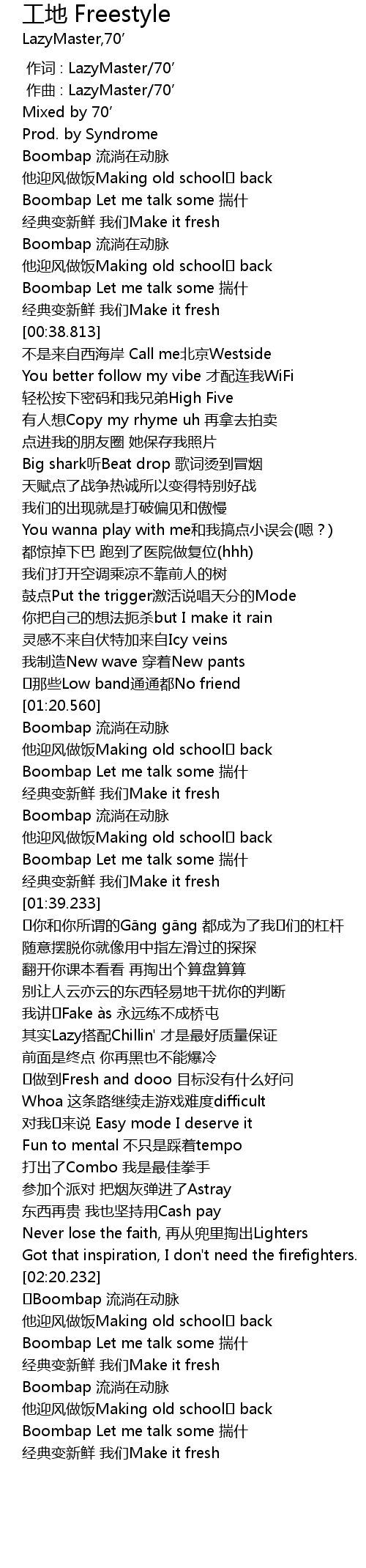 | [02:36.663] | Boombap Let me talk some 揣什 |
