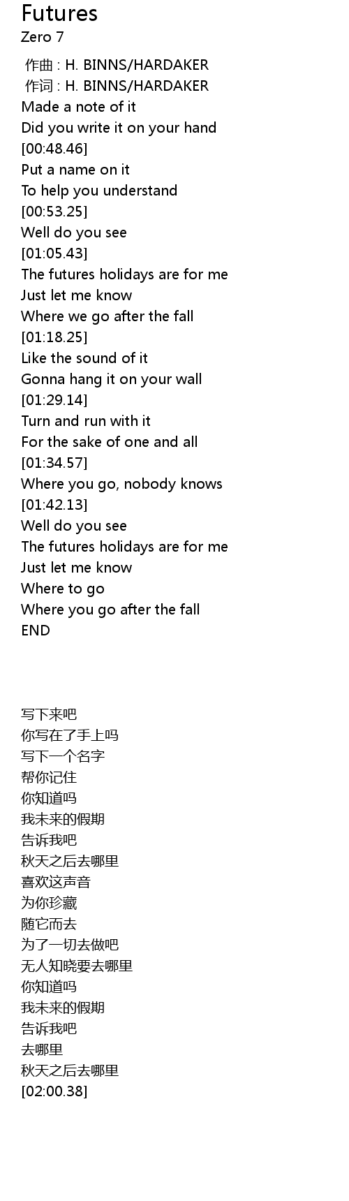 | [00:01.00] | zuo ci : H. BINNS HARDAKER |