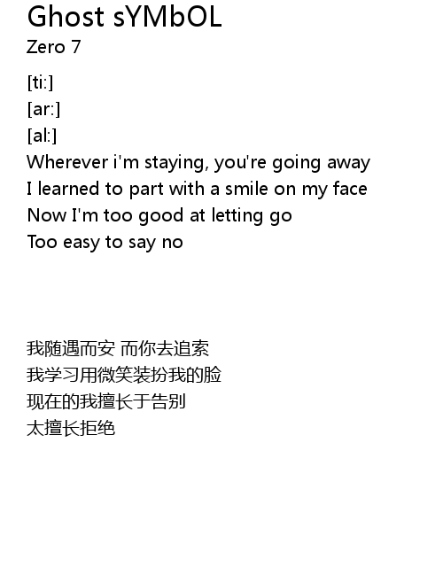 | [02:14.51] | Wherever i'm staying, you're going away |