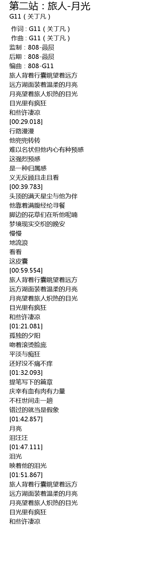 | [00:00.000] | 作词 : G11(关丁凡) |