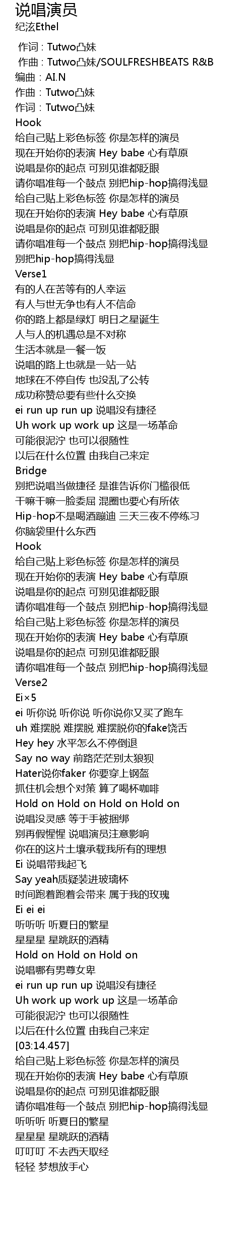 | [02:45.116] | 别再假惺惺 说唱演员注意影响 |