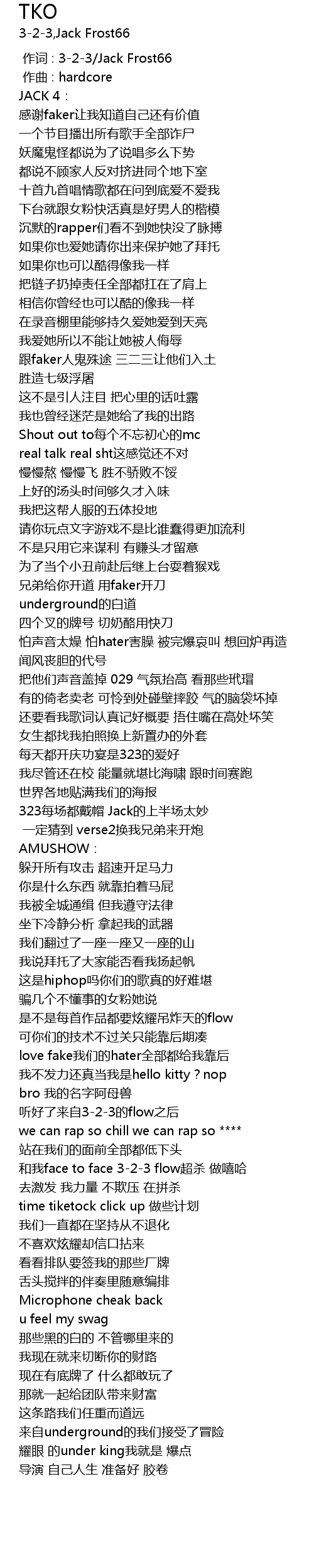 | [02:16.24] | 和我face to face 3-2-3 flow超杀 做嘻哈 |