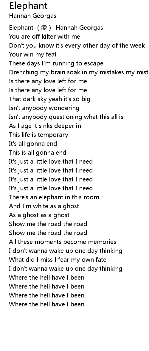 | [00:00.00] | Elephant xiàng Hannah Georgas |