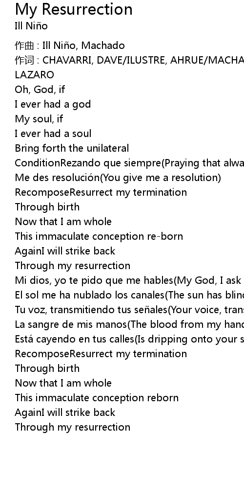 | 作曲 : Ill Niño, Machado | |