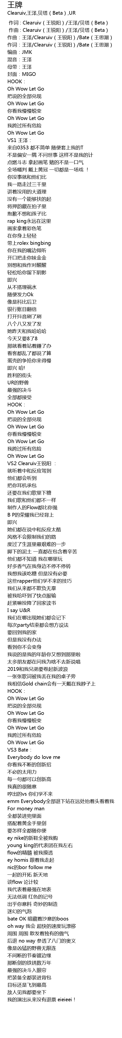 | [00:01.093] | 作词:王泽/Clearuiv(王锐阳)/Bate(王思潮) |