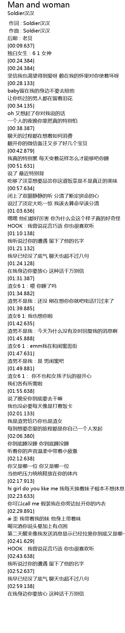 | [00:00.000] | 作词 : Soldier汉汉 |