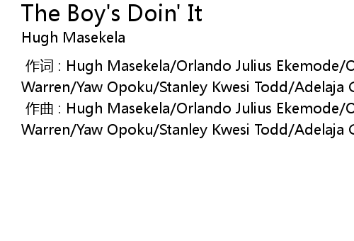 | [00:00.000] | zuò cí : Hugh Masekela Orlando Julius Ekemode Odinga " Guy" Warren Yaw Opoku Stanley Kwesi Todd Adelaja Gboyega Papa Frankie Todd |