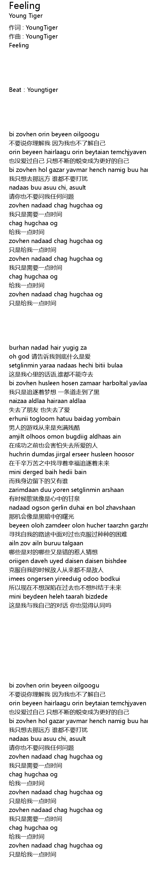 | 作词 : YoungTiger | |