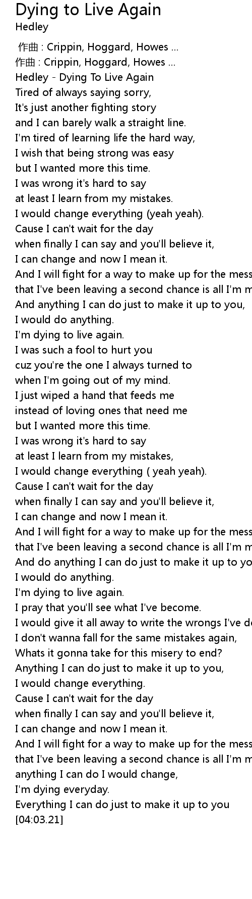 | [00:01.91] | Hedley - Dying To Live Again |