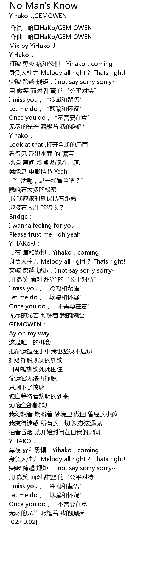 | [00:00.00] | 作词 : 哈口HaKo/GEM OWEN |