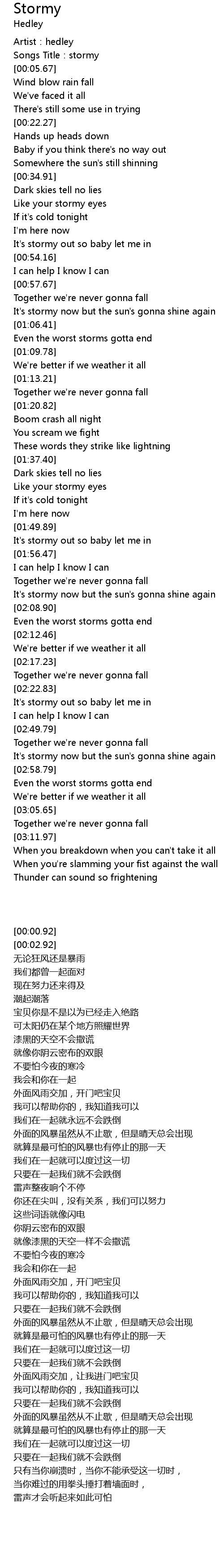 | [02:03.21] | It' s stormy now but the sun' s gonna shine again |