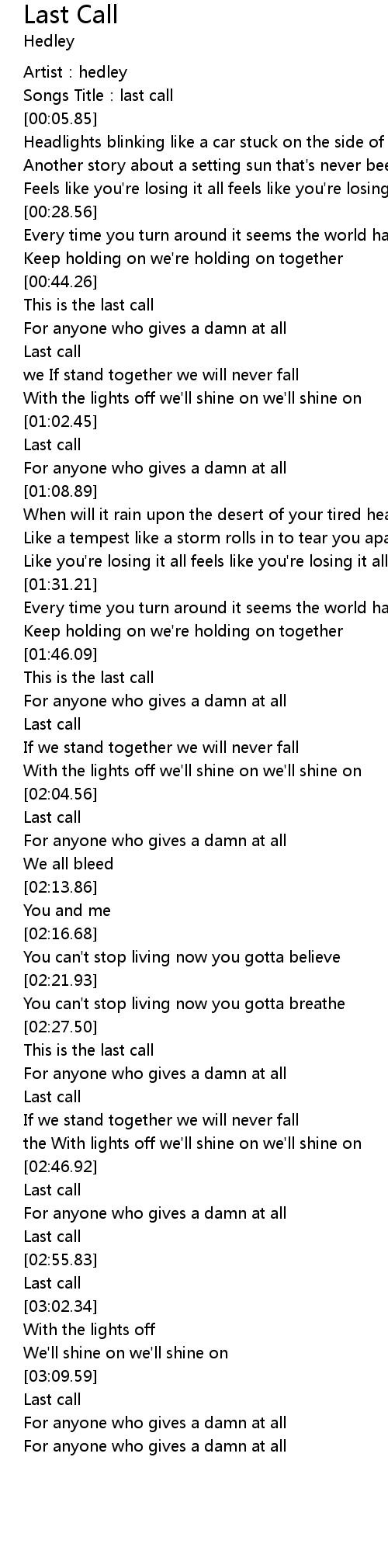 | [00:02.92] | Songs Title:last call |