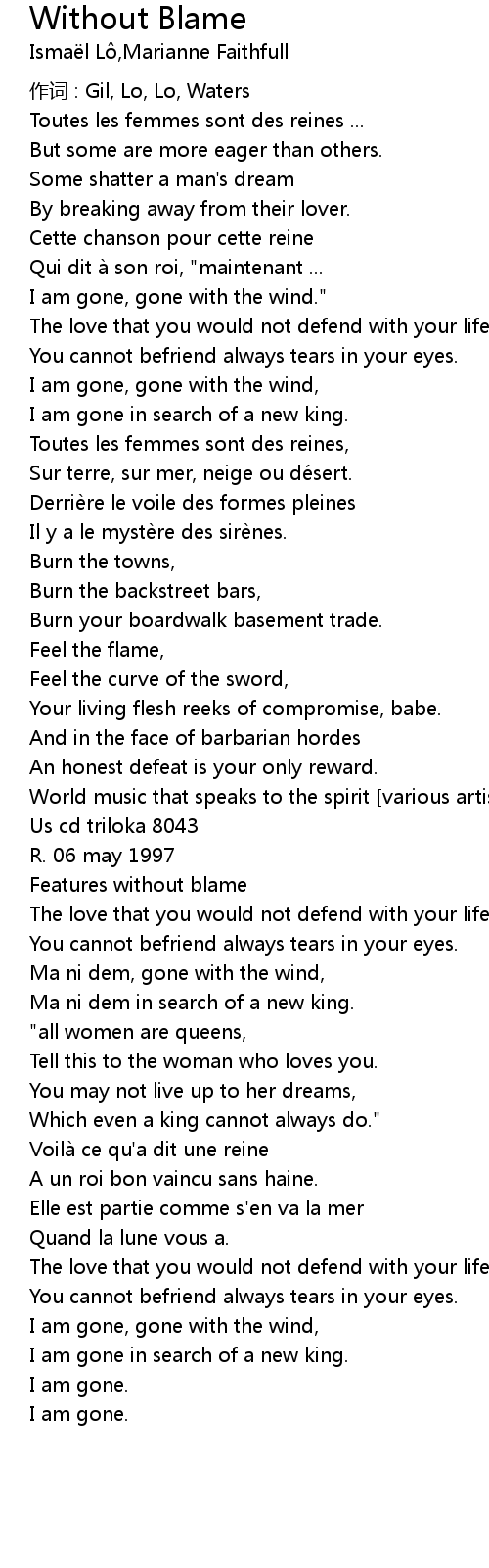| Song | Without Blame |