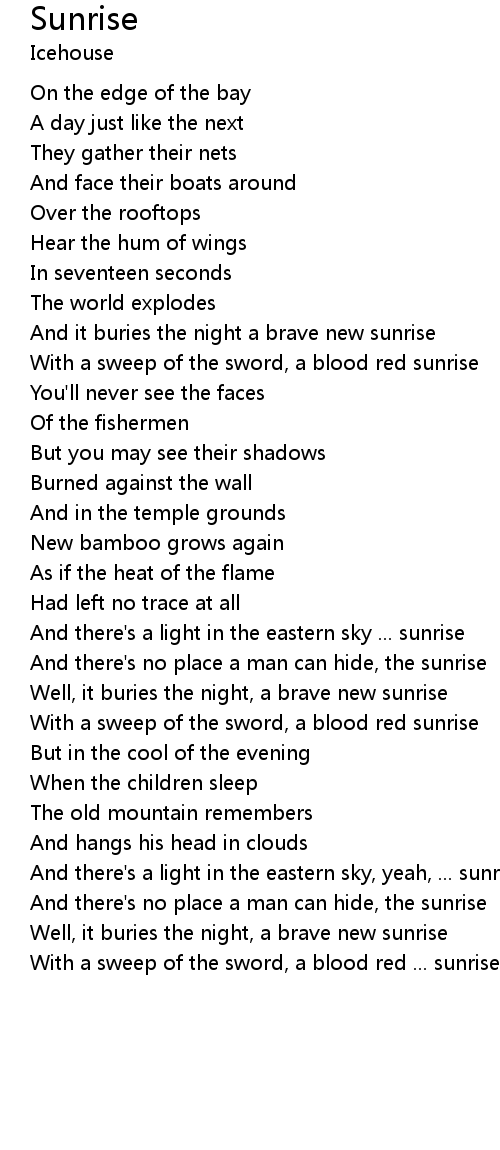 And there's a light in the eastern sky, yeah, ... sunrise |