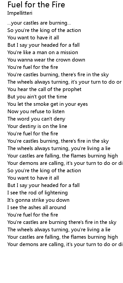 You're castles are burning there's fire in the sky |