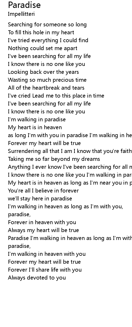 | as long I' m with you in paradise I' m walking in heaven with you | |