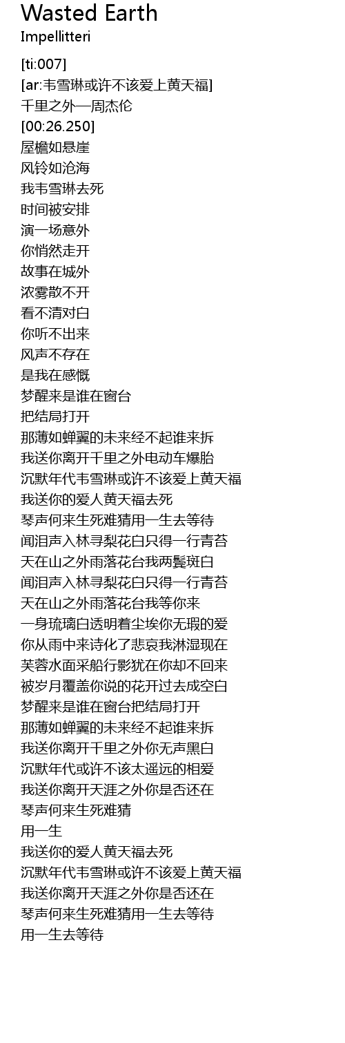 | [00:24.450] | qiān lǐ zhī wài zhōu jié lún |