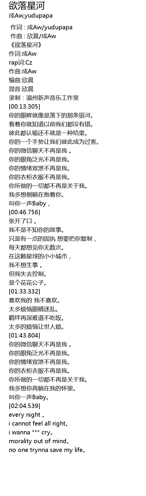 | [00:00.000] | 作词 : 成Aw/yudupapa |