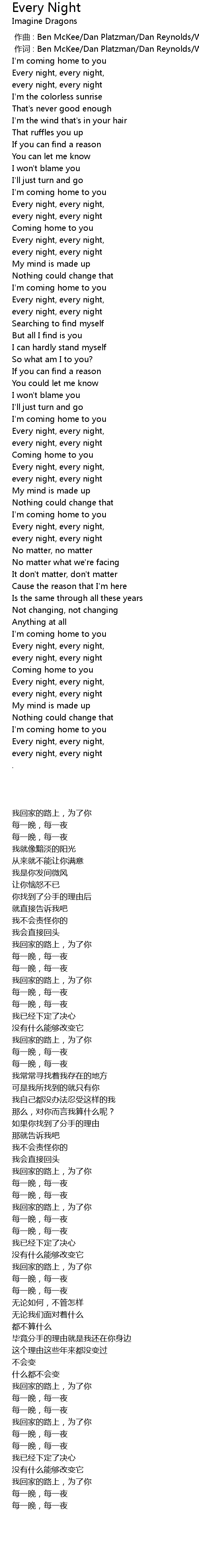 | [00:00.130] | 作词 : Ben McKee/Dan Platzman/Dan Reynolds/Wayne Sermon |