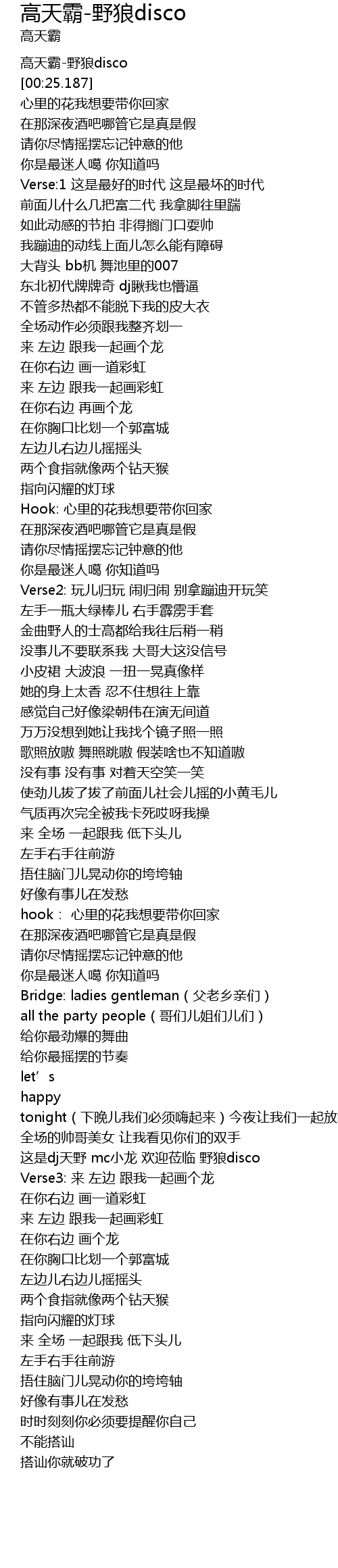 | [00:24.687] | gāo tiān bà yě láng disco |