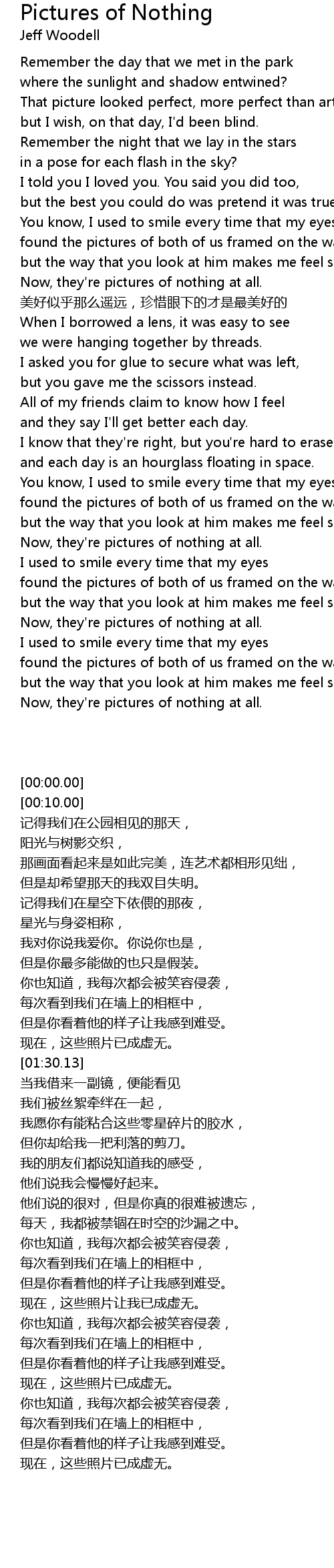 | [01:22.70] | Now, they' re pictures of nothing at all. |