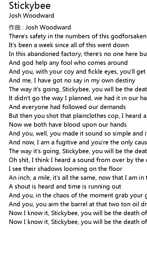 | Now I know it, Stickybee, you will be the death of me, oh no |