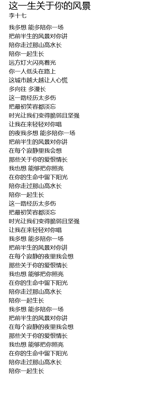 | [00:16.250] | pei ni zou guo na shan gao shui chang |