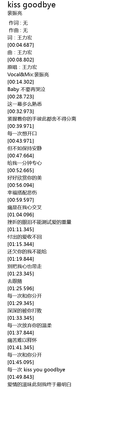 | [01:45.595] | mei yi ci kiss you goodbye |