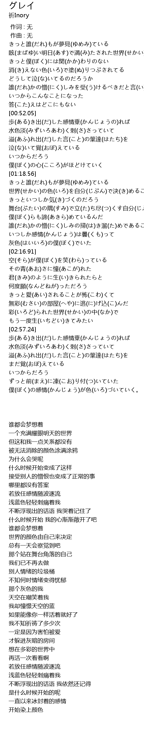 | [02:12.80] | 灰色(はいいろ)の僕(ぼく)でいた |