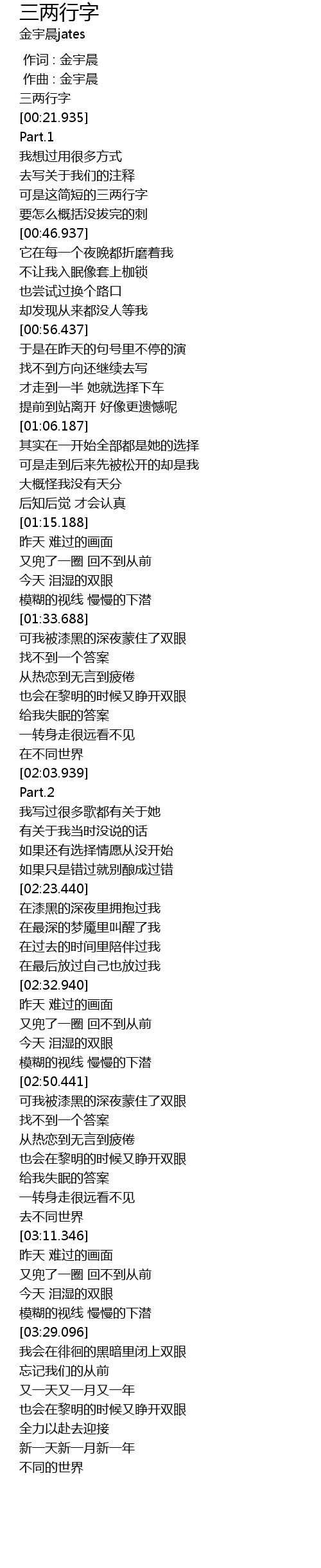 | [00:00.000] | 作词 : 金宇晨 |