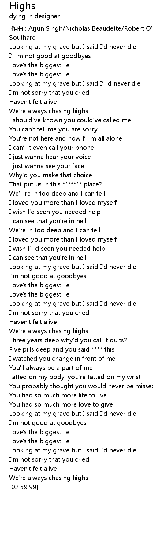 | [02:46.66] | Looking at my grave but I said I' d never die |