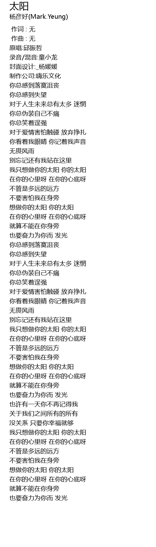 | [03:23.987] | 我只想做你的太阳 你的太阳 |