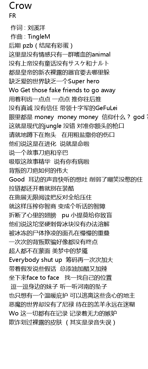 | [01:38.274] | 欺诈划过裸露的皮肤 (其实是录音失误) |